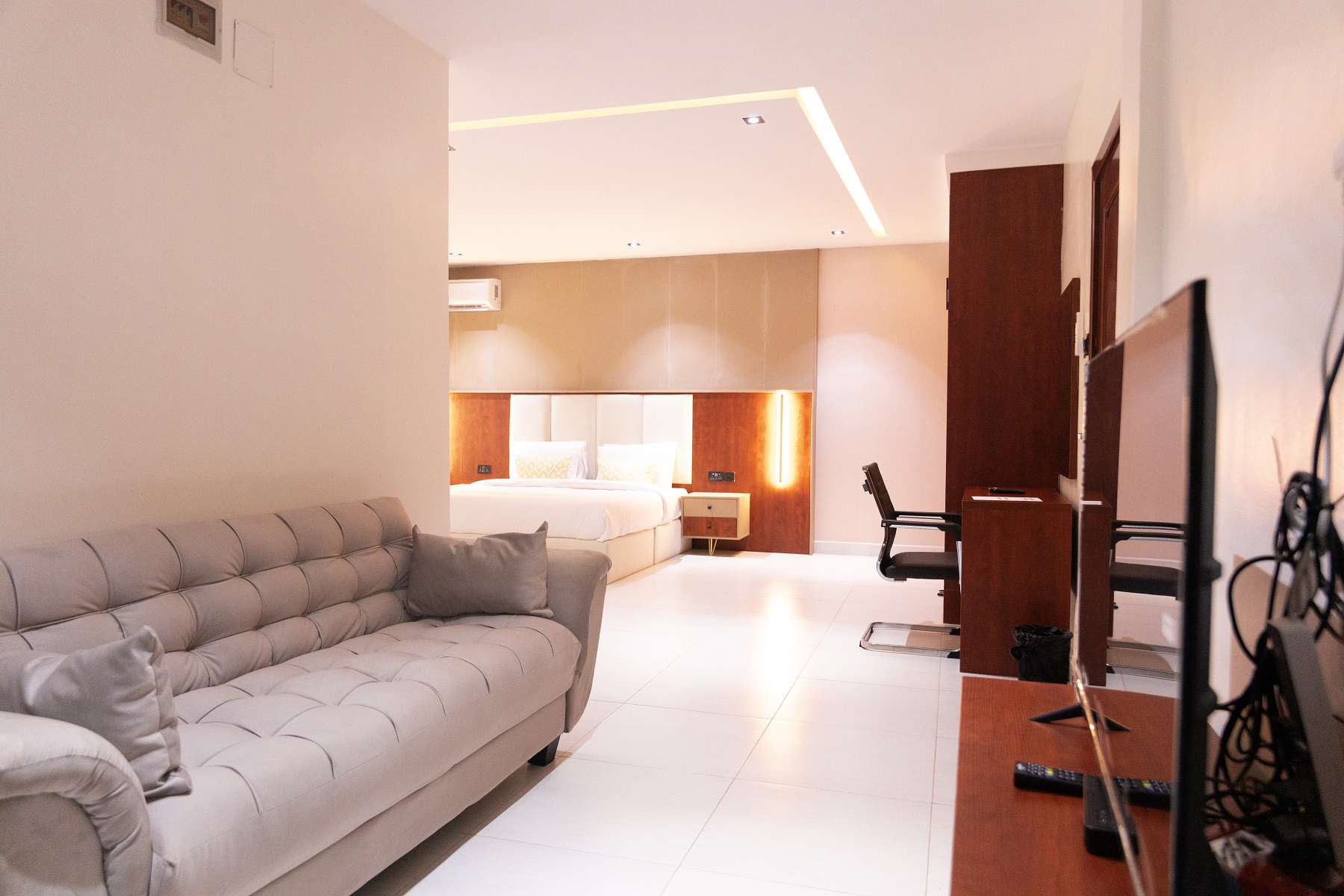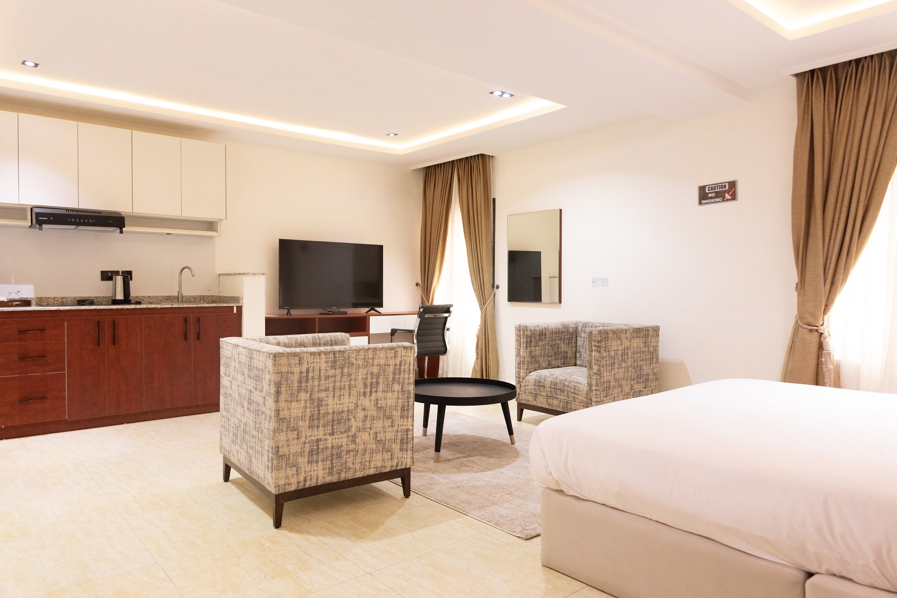 Classic Studio Royal Residence Executive Loft Guest have option of 10 comfortable andclassic rooms which includes 4 classic studio, 2 Royal Residence and 4 Executive Loft all design to to suite your needs Classic studio Room includes the following facilities Aircon Wi-Fi Connection Smart TV, Internet access/Satelight Hair Dryer King-size Bed Study Space Royal Residence Rooms include the following facilities Aircon Wi-Fi Connection 1 Smart TV, Internet access, 1 Satelight TV Hair Dryer King-size Bed Study Space Executive Loft Rooms include the following facilities Aircon Wi-Fi Connection 1 Smart TV, Internet access, 1 Satelight TV Hair Dryer King-size Bed Study Space